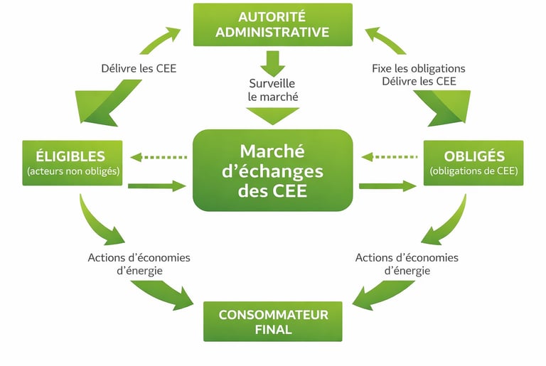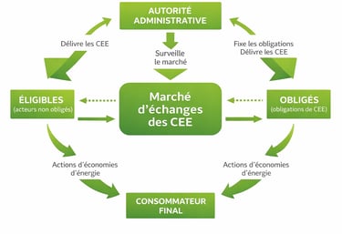 Le mécanisme implique des acteurs “obligés” qui incitent et obtiennent des CEE en contrepartie d’économies d’énergie prouvées.